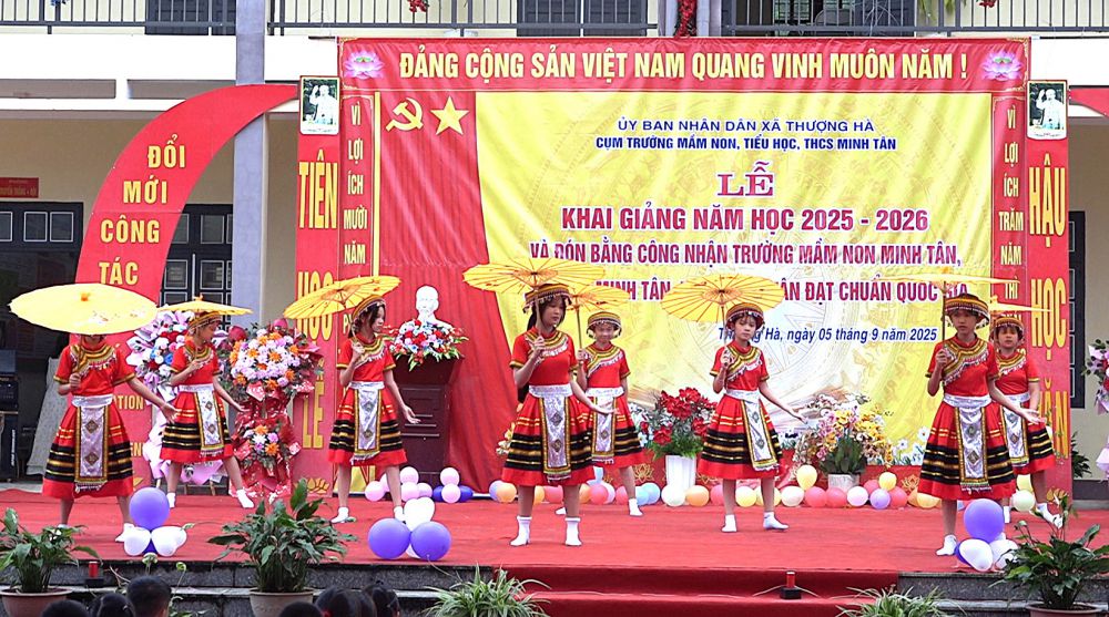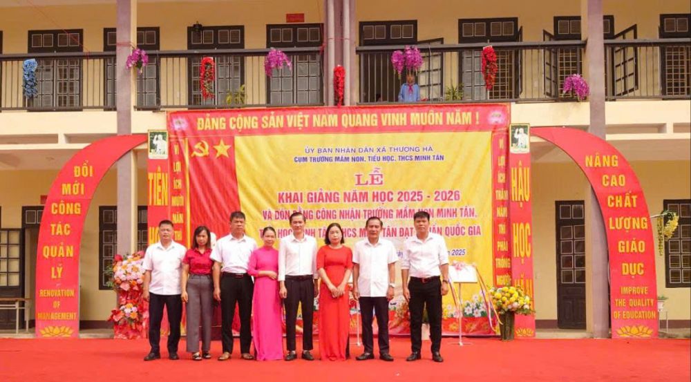 Sáng ngày 05/09/2025 thầy và trò cụm trường Mầm non, Tiểu học, THCS Minh Tân, xã Thượng Hà long trọng tổ chức lễ khai giảng năm học 2025-2026 và đón bằng công nhận trường đạt chuẩn quốc gia Mức độ 1.