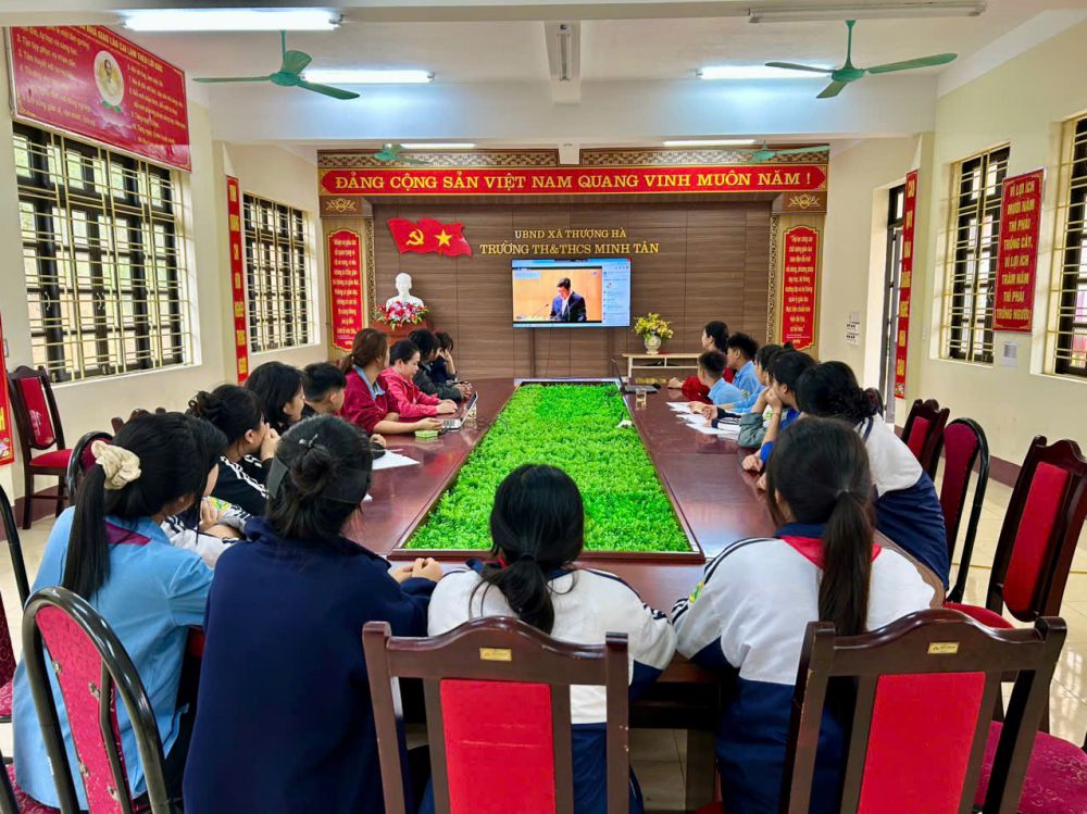 Thực hiện theo thông báo của cấp trên, vào lúc 08h00 ngày 20/3/2026, Trường Tiểu học và Trung học cơ sở Minh Tân đã tham gia Hội nghị trực tuyến với chủ đề “Xã, phường không ma túy”.